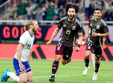 t Con marcador de 2-0, el equipo mexicano derrotó por primera vez en cinco años al representativo estadunidense. Los aficionados esta vez sí respondieron y llenaron el estadio Akron, en Jalisco, donde lanzaron el grito discriminatorio que ha causado millonarias multas de FIFA. Andrés Guardado recibió un homenaje por ser su último partido con la playera verde. En la imagen, César Chino Huerta festeja el segundo tanto. Foto Afp a aceves, enviado / P 35