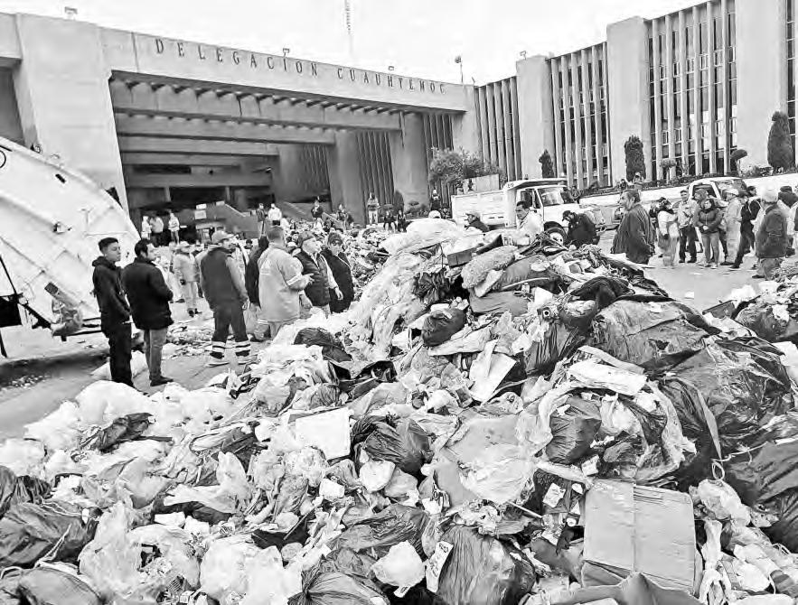 Trabajadores de limpia en la alcaldía Cuauhtémoc depositaron varias toneladas de basura en la explanada de la sede del gobierno de esa demarcación la mañana de ayer, en protesta por la falta de pago de su última quincena, situación que la alcaldía atribuyó a la intención de erradicar irregularidades en el manejo de la nómina y la operación del servicio que heredó de la pasada administración de Sandra Cuevas.