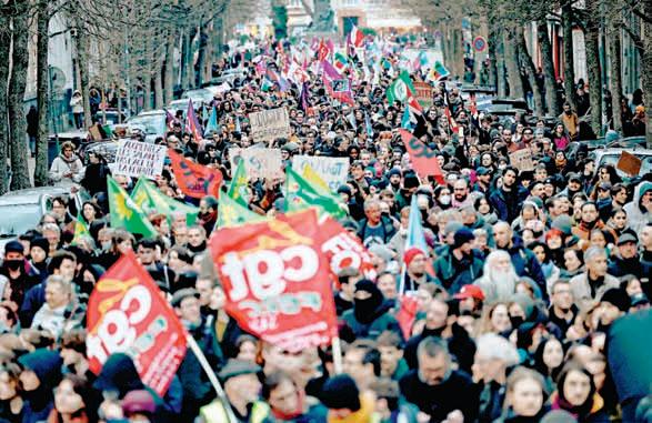 sindicatos lograron convocar a casi 2 millones de personas, en la mayor protesta contra una reforma social en tres décadas, en medio de la paralización de varios sectores de la economía que, por ejemplo, mantienen a París casi desbordada de basura. El líder del partido de izquierda Francia Insumisa, Jean-Luc Mélenchon, advirtió sobre más movilizaciones y tildó los últimos movimientos del Ejecutivo como un “fracaso espectacular” y el “hundimiento de la minoría presidencial”.