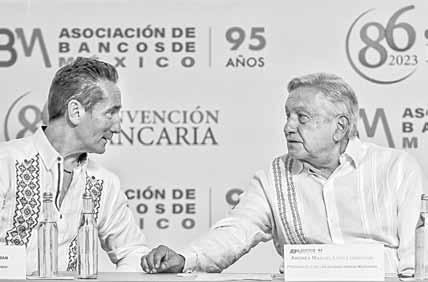 El Presidente con Daniel Becker, titular saliente de la ABM, en la 86 Convención Bancaria. Foto Marco Peláez