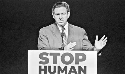 sus colegas a escala estatal. En particular, parece sostener una demencial competencia con el gobernador de Texas, Greg Abbott, por adoptar las políticas más crueles contra los migrantes. El texano ha desplegado un aparato bélico que incluye tanquetas y helicópteros de combate para vender la idea de que su entidad encara una invasión, y ya anunció que impulsará leyes para hacer de la migración indocumentada un delito grave. En su proyecto, quien ayude a un migrante sin papeles a “esconderse” será condenado a un mínimo de 10 años de prisión.