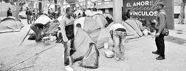 En el lugar se colocaron por lo menos 40 casas de campaña en espera de que la Comar les otorgue una cita a fin de que puedan acceder a un protocolo para que se les entregue una cédula con la que se les permita permanecer en la capital o seguir su camino hacia el norte del país.