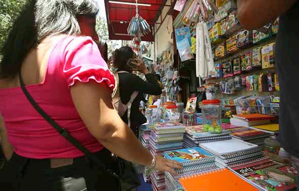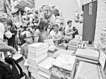 particulares. En tanto, los padres acuden a la calle de Mesones en el Centro Histórico (imagen) en busca del mejor precio de cuadernos, uniformes escolares y la “segunda lista” de material de higiene. Los entrevistados prevén un desembolso de 5 a 7 mil pesos. Foto Yazmín Ortega Cortés JULIO GUTIÉRREZ Y ELBA MÓNICA BRAVO / P 18 Y 28