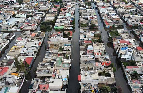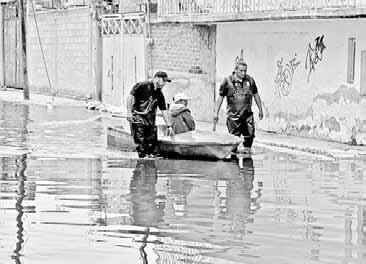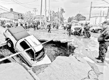provoca enfermedades y desesperación entre los pobladores afectados. Especialistas del gobierno estatal no han logrado retirar un tapón de basura que obstruye el desagüe del colector Solidaridad. En tanto, en Valle de Aragón, en Ecatepec, ayer se abrió un socavón de unos 8 metros de diámetro. Foto Cuartoscuro. RENÉ RAMÓN Y JAVIER SALINAS, CORRESPONSALES / P 26