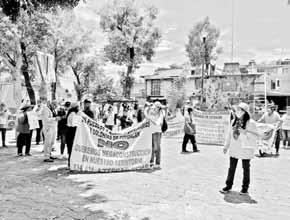 Más de medio centenar de personas se juntaron en la plazuela del primer pueblo para marchar por Eje 10 y avenida Aztecas con un cartel al frente en el que reclamaron al alcalde, Giovani Gutiérrez, de haber concedido una licencia