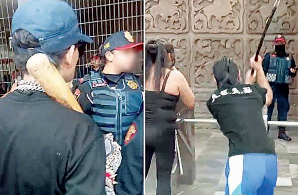 Feministas agreden a mujer policía en Metro Insurgentes ▲ Un grupo de mujeres que se manifestó en la Glorieta Insurgentes se enfrentó a integrantes de la Policía Bancaria e Industrial que resguardaban las instalaciones del Metro debido a las grabaciones de las protestas que realizó una agente de la corporación. Para evitar una pugna mayor, la uniformada fue retirada del lugar, lo que ocasionó que las inconformes golpearan con palos y tubos los torniquetes. Usuarios les pidieron no afectar las instalaciones, pero también fueron agredidos. Foto tomada de redes sociales. REDACCIÓN DE CAPITAL / P 27