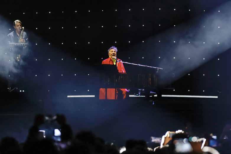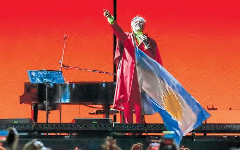 ▲ El cantautor salió al escenario con un atuendo rojo característico de su gira El amor después del amor Fotos Germán Canseco