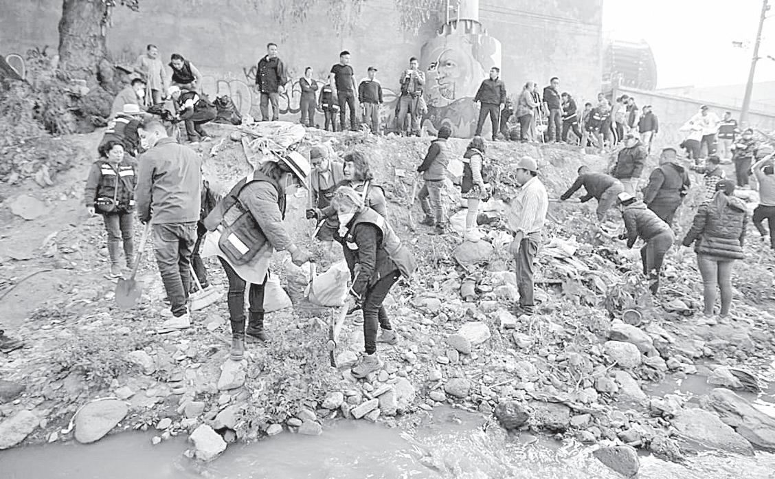 Entre tierra, piedras, varillas y los armazones de la red pluvial, el