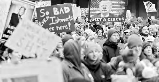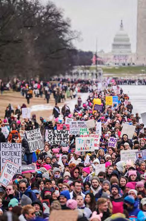 s Convocados por organizaciones de mujeres, de defensa de migrantes, de derechos LgBT+ y ambientalistas, entre otras, miles de personas desafiaron el frío para marchar frente a la Casa Blanca y
