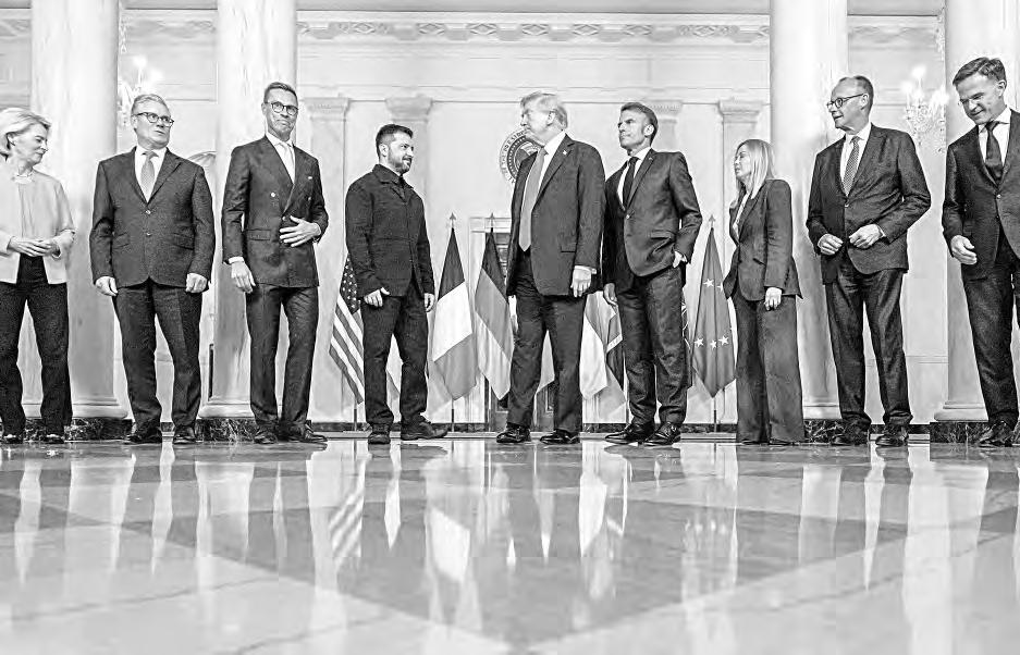 El propio Zelensky; el secretario general de la OTAN, Mark Rutte; la presidenta de la Comisión Europea, Ursula von der Leyen; el primer ministro de Reino Unido, Keir Starmer; la primera ministra de Italia, Giorgia Meloni; el presidente de Finlandia, Alexander Stubb; el canciller federal de Alemania, Friedrich Merz, y el presidente de Francia, Emmanuel Macron, parecen haber aprendido la lección de no contradecir a Trump; en cambio, se deshicieron en elogios hacia su persona, agradeciendo en todo momento sus esfuerzos, pese a la obvia divergencia de intereses, objetivos y estrategias con que arrancó y terminó el encuentro.