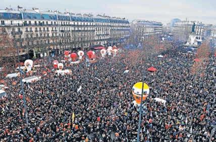 ▲ El presidente Andrés Manuel López Obrador y la mandataria capitalina, Claudia Sheinbaum, inauguraron ayer la Calzada Flotante, la cual va del Centro Cultural Los Pinos a la segunda sección del bosque, y el Centro de Cultura Ambiental de ese espacio. Los gobiernos federal y local se encargaron de las obras. Foto La Jornada. ALEJANDRO CRUZ Y REDACCIÓN / P 28 ● El hecho se dio en secundaria de la CDMX JOSEFINA QUINTERO / P 29 Consumieron el fármaco clonazepam En reto TikTok, cinco alumnos intoxicados ● Resalta en ese acto que quedó resuelto el abasto de medicinas para este año y 2024 NÉSTOR JIMÉNEZ Y ALONSO URRUTIA / P 7 Encabeza el 80 aniversario del instituto Está el IMSS en ‘‘muy buena época’’: AMLO No es decreto autoritario: el Presidente ‘‘Se negocia traslado de vuelos de carga al AIFA’’ ● Pláticas con empresas y agencias aduanales ALONSO URRUTIA Y NÉSTOR JIMÉNEZ / P 16 ▲ Cientos de miles de personas se manifestaron en París (imagen) y otras ciudades contra el proyecto del presidente Emmanuel Macron de elevar la edad de jubilación a 64 años. El gobierno aduce que es la única manera de evitar un déficit en la caja de pensiones. Foto Afp. AGENCIAS / P 17 Francia: repudio a la reforma en pensiones 7502228390008
