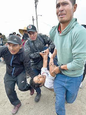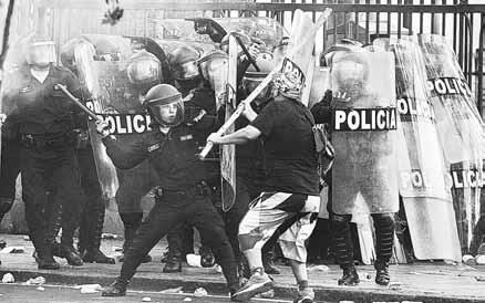 ● La ‘‘toma de Lima’’ fue el eje de la masiva protesta ● Represión, la respuesta oficial; tres muertes más ● Boluarte: ‘‘limpia acción policiaca; todo bajo control’’ CARLOS NORIEGA / PÁGINA12/ P 20 ▲ ‘‘¡Dina, asesina, el pueblo te repudia!’’, fue el clamor de miles de peruanos en Lima. Más de 11 mil policías fueron desplegados. Los enfrentamientos fueron constantes y hubo un incendio en edificio del centro. Fotos Ap y Afp PERÚ