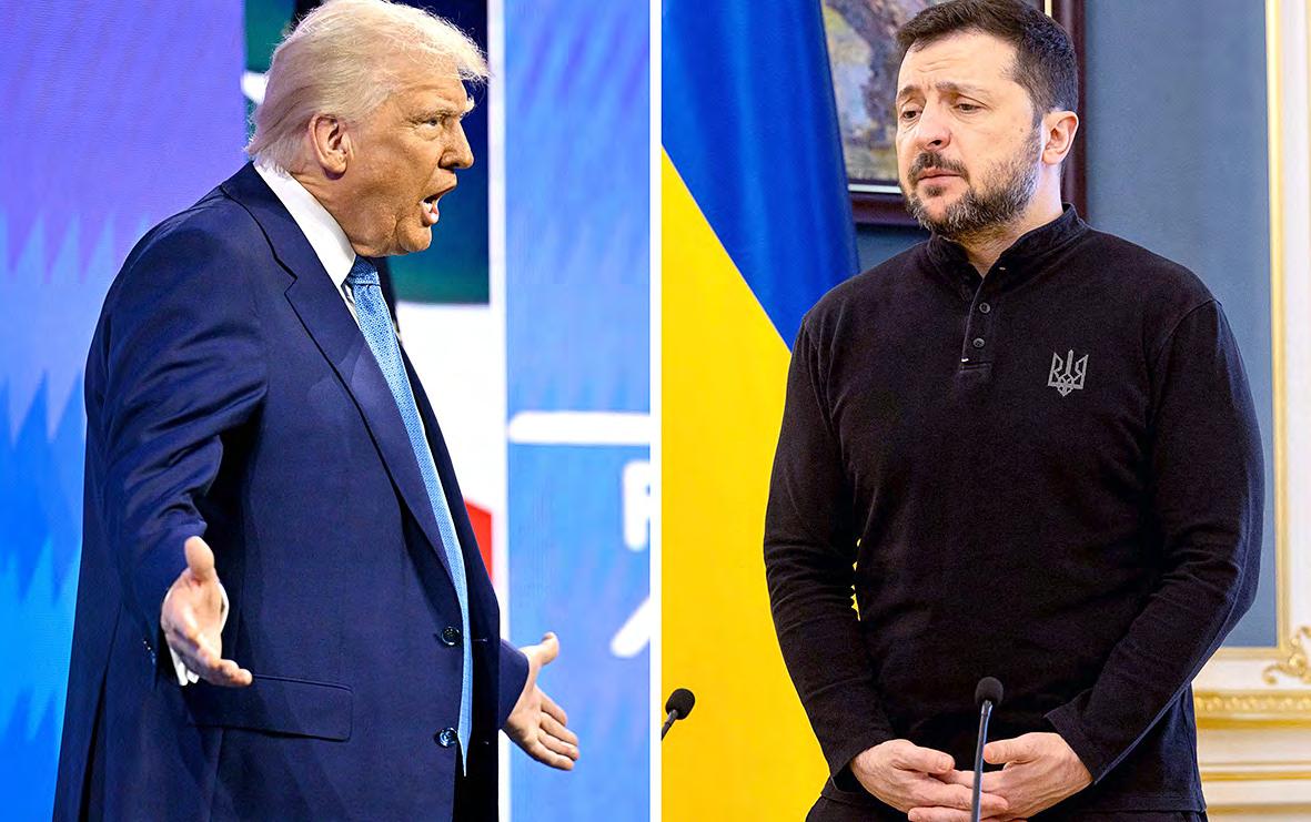 comenzar”. En imágenes de ayer, el republicano durante la cumbre Iniciativa de Inversiones Futuras en Miami, Florida. A la derecha, el presidente ucranio durante una conferencia en Kiev. Fotos Afp