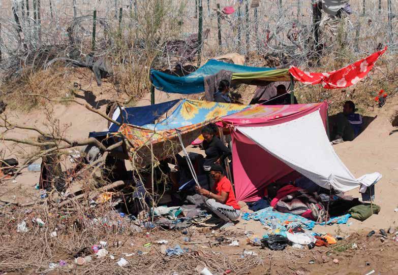 migrantes que buscan asilo en estados Unidos han levantado precarias tiendas de campaña a lo largo de frontera de ciudad Juárez, chihuahua. la resolución de la corte suprema de estados Unidos, que