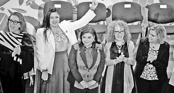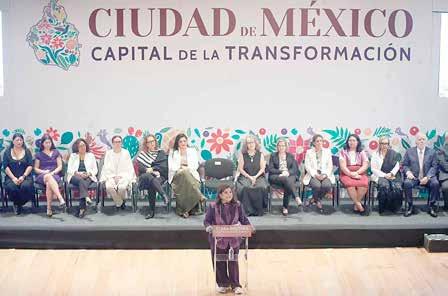 t La próxima jefa de Gobierno de la Ciudad de México anunció en el Antiguo Colegio de San Ildefonso a los 21 integrantes de su gabinete legal (11 mujeres y 10 hombres) que la acompañarán para el periodo 2024-2030 a partir del 5 de octubre, cuando rinda protesta ante el pleno del Congreso capitalino, al que llamó a valorar la creación de tres secretarías. Foto Cristina Rodríguez ROCÍO GONZÁLEZ ALVARADO / P 26