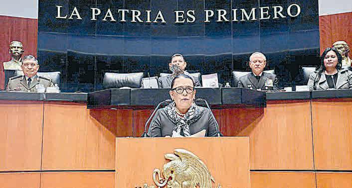 ANDREA BECERRIL Y VÍCTOR BALLINASLa titular de la Secretaría de Seguridad y Protección Ciudadana (SSPC), Rosa Icela Rodríguez, destacó ayer desde el pleno del Senado que en México hay un gobierno civil y un Ejército de paz que no persigue ni criminaliza, sino que protege a la sociedad, por lo que carece de sustento la afirmación de los opositores de que el país avanza a la militarización. Explicó: “la paz es asunto de Estado”.