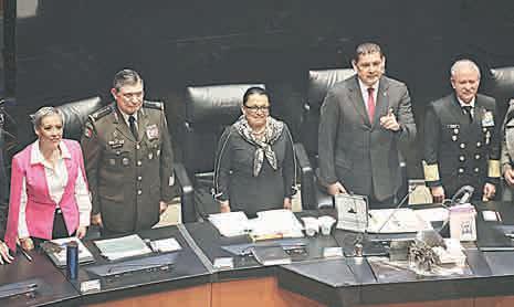 fuerzas armadas. “Es una estrategia equivocada, pero allá ustedes; nosotros le expresamos, general secretario de la Defensa, nuestros respetos”. En su segundo y último turno, Rosa Icela Rodríguez defendió el papel de las fuerzas armadas, las que, aseguró, tienen el reconocimiento de la mayoría de los ciudadanos y deploró el doble discurso de quienes critican “el trabajo extraordinario del Ejército y la Marina, lo llaman militarización, pero lo piden para sus estados”.