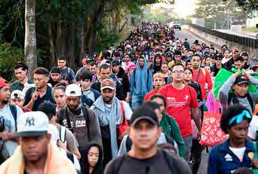 t Un grupo de migrantes emprendió la marcha desde Tapachula, Chiapas, con rumbo al norte, pese a los riesgos del trayecto y las restricciones impuestas por Donald Trump. “No vemos posibilidad de entrar tranquilamente a EU, pero creemos en el poder de Dios”, dijo uno de ellos. Foto Afp édGar H. ClEMEntE, corresponsal / p 13