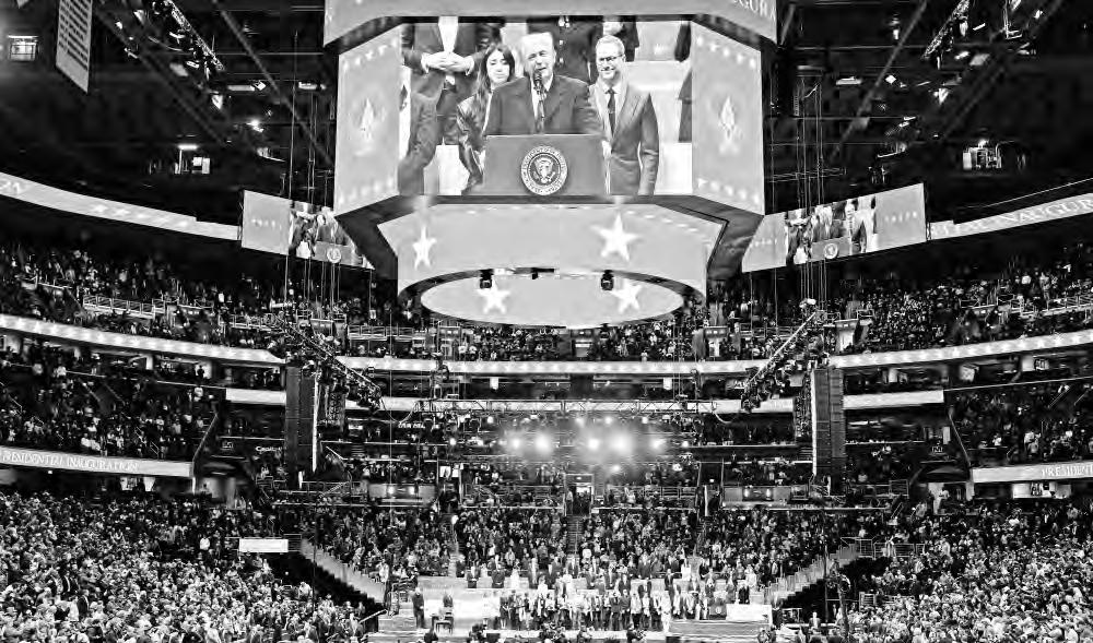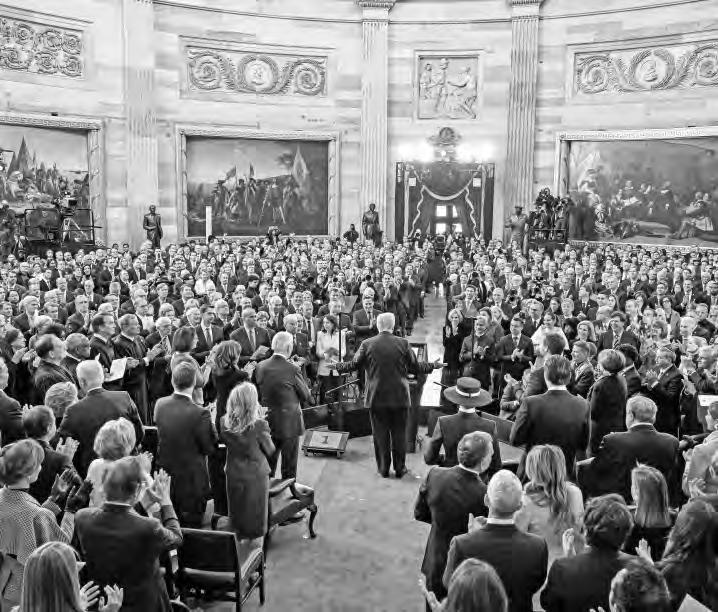 Todo esto, ante una audiencia dentro de la rotonda del Capitolio –en la sede que fue invadida por sus fanáticos para descarrilar la ratificación de los resultados de la elección anterior– conformada por su familia, su vicepresidente, los ex mandatarios Bill Clinton, George W. Bush y Barack Obama, los líderes del Congreso, los nominados para su gabinete e invitados de honor, incluidos algunos de los hombres más ricos del planeta, donantes, algunos influencers famosos, estrellas de carreras de autos y otros comunicadores que son efectivos con sus bases. Proclamó que encabeza “una oleada de cambio” para el país, donde la nación se une “en torno a nuestra agenda” (eso es falso según las encuestas más recientes).