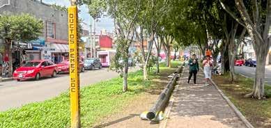 rías de ocho pulgadas de diámetro y 13 metros de largo, colocados en el camellón, junto a postes amarillos con el indicativo de que se trata de infraestructura de Pemex y se advierte “No golpear, no excavar, no construir”. Los ductos son custodiados por personal en una camioneta de Pemex de Salvaguadia Estratégica.