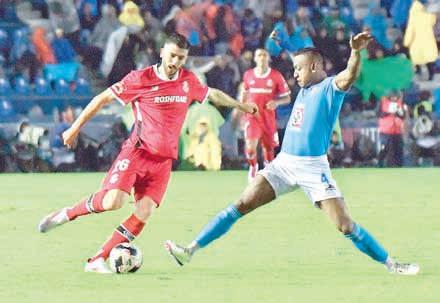 ▲ João Dias, de los escarlatas, dio el pase a su compañero Maximiliano Araújo para abrir el marcador al 39. Foto Cuartoscuro