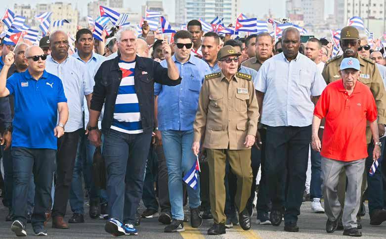La “marcha del pueblo combatiente contra el bloqueo y la permanencia de cuba en la lista de países patrocinadores del terrorismo” fue encabezada por raúl castro y miguel díaz-canel. Foto ap afp / p 20