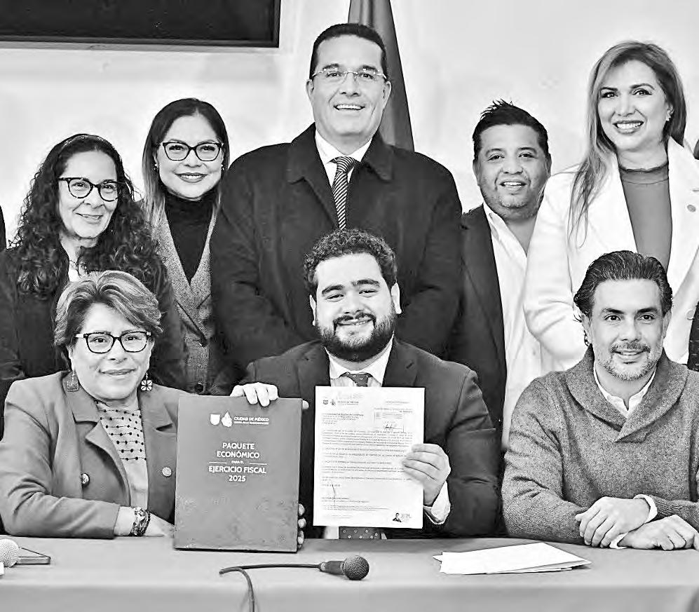 ▲ Diputados locales con el titular de Finanzas, Juan Pablo de Botton, en la presentación del paquete 2025. Foto La Jornada