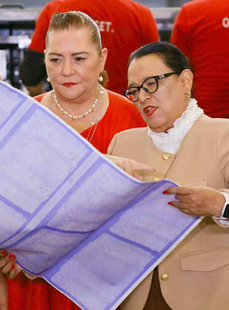 s al comenzar la producción de 602 millones de boletas en Talleres Gráficos de México para la elección de jueces, ministros y magistrados, la secretaria de Gobernación, rosa Icela rodríguez (a la derecha), confió en que esos