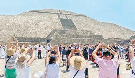 ▲ Miles de visitantes nacionales y extranjeros colmaron ayer la Ciudad de los Dioses por el cambio de estación para ‘‘llenarse de energía por el equinoccio’’, aunque éste entró el 19 de marzo