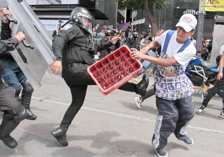 intentaron replegar a los vendedores, que por segundo día consecutivo bloquearon eje Central y avenida juárez en demanda de espacios para expender su mercancía. Foto Germán Canseco e. bravo / P 25
