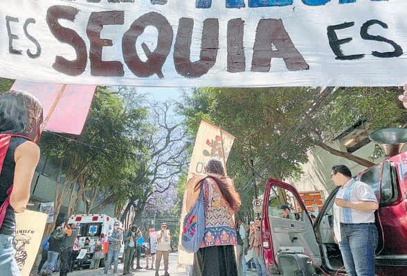 ▲ Organizaciones vecinales realizaron una concentración frente a la sede del Sistema de Aguas de la Ciudad de México, en la colonia Cuauhtémoc, para demandar una mejor distribución del líquido y que ya no se permiita la construcción de desarrollos inmobiliarios.