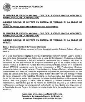 Dada cuenta con los presentes autos, se aclara el auto de fecha quince de diciembre del dos mil veintidós, en la parte conducente que a la letra dice “… y en los términos ordenados en auto de fecha cinco de junio del dos mil veintiuno…” debiendo ser lo correcto “… y en los términos ordenados en auto de fecha cinco de julio del dos mil veintiuno…”,cadas que se expidan de la misma. Debiendo turnarse el expediente al encargado de turno a efecto de que sirva dar MEDINA TORRENTERA actuando con la Secretaría de Acuerdos “B”, Licenciada CLAUDIA GONZÁLEZ SAUZA, con quien actúa y da fe. DOY FE.----- DOS FIRMAS --Ciudad de México, a veinticinco de enero del año dos mil veintitrés.--Agréguese a sus autos el escrito de cuenta, de la parte actora por conducto de su apoderado legal y copias de traslado que exhibe del ocurso de cuenta, como lo solicita con fundamento en el artículo 1055 del Código de Comercio vigente en esta Ciudad, se procede a aclarar el proveído de fecha quince de diciembre del dos mil veintidós, sin que con ello se vulneren las reglas de procedimientos; en la parte conducente que a la letra dice “… practíquese el emplazamiento ordenado en autos a la parte demandada, por medio de edictos…” debiendo ser lo correcto “…practíquese el emplazamiento ordenado en autos a los codemandados NUTRITIVOS DEL CAMPO S.P.R. DE R.L. y URIEL RAMÍREZ BORJA, por medio de edictos…”, debiendo formar el presente auto parte integral de aquel que se aclara, e incluirse en cuantas artículo 1069 del Código de Comercio. Respecto a la autorización que pretende para recibir valores, deberá estar a lo ordenado en el acuerdo 53-06-2017, emitido por el Pleno del Consejo de la Judicatura de la Ciudad de México, en sesión ordinaria celebrada el día treinta y uno de enero del dos mil diecisiete, publicado en el Boletín judicial No. 25 del trece de febrero de dos mil diecisiete. Debiendo el encargado del turno elaborar los edictos en términos del proveído Civil LETICIA MEDINA TORRENTERA actuando con la Secretaría de Acuerdos “B”, Licenciada CLAUDIA GONZÁLEZ SAUZA, con quien actúa y da fe. DOY FE.----- DOS FIRMAS --Ciudad de México, a 30 de enero de 2023 LA C. SECRETARIA DE ACUERDOS “B” LIC. CLAUDIA GONZÁLEZ SAUZA
