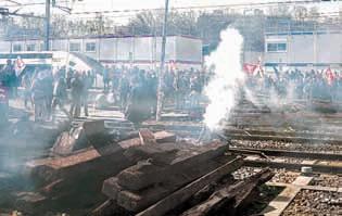 El presidente de Francia advirtió que ‘‘no tolerará desbordamientos’’ en las protestas contra la reforma pensionaria. Anunció gran despliegue policiaco ante la huelga general de hoy. En la imagen, bloqueo en una estación de Toulouse. Foto Afp. ARMANDO G. TEJEDA / P 23
