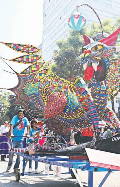 ▲ Alebrijes con figuras de seres extraordinarios desfilaron por Reforma; en la noche, los globos iluminaron el Zócalo. Fotos Yazmín Ortega Cortés y José Antonio López
