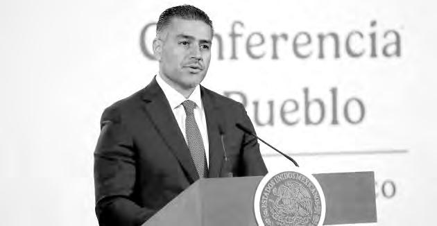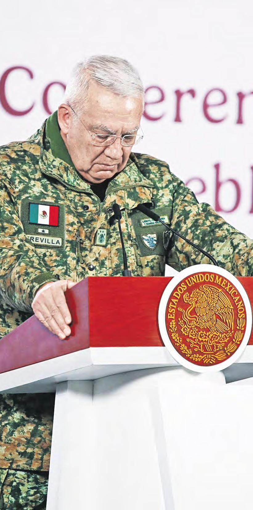 ▲ La voz del secretario de la Defensa, general Ricardo Trevilla, se entrecortó por un momento al recordar ayer en la conferencia matutina a los 25 elementos de la Guardia Nacional que murieron el domingo pasado en enfrentamientos con miembros del cártel Jalisco Nueva Generación luego de que el jefe de este grupo criminal, Nemesio Oseguera Cervantes, fuera abatido por el Ejército en Tapalpa, Jalisco. Tras hacer un reconocimiento a los participantes, afirmó que la operación fue exitosa y demostró “la fortaleza del Estado mexicano”. Foto Cristina Rodríguez ALONSO URRUTIA Y EMIR OLIVARES / P 3