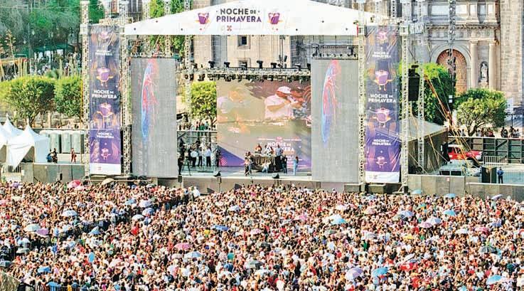 ▲ el Centro Histórico de la Ciudad de méxico fue el gran escenario de la noche de Primavera, que congregó al público en conciertos gratuitos de artistas nacionales e internacionales, con propuestas de rock, electrónica, jazz, regional, boleros, ópera, circo y fusión latina.