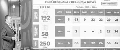 En contraparte, mencionó, en ese mismo periodo se han registrado sólo 58 liberaciones entre semana de personas privadas de la libertad por diversos ilícitos.
