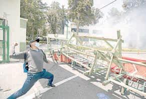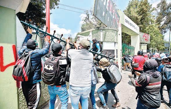 ▲ En un hecho inédito y al grito de “¡vivos se los llevaron y vivos los queremos!”, cientos de estudiantes de Ayotzinapa lanzaron petardos, piedras y palos contra la entrada principal del Campo Militar número 1, con la “certeza” de que mandos del Ejército son responsables del asesinato de algunos de los normalistas desaparecidos tras el