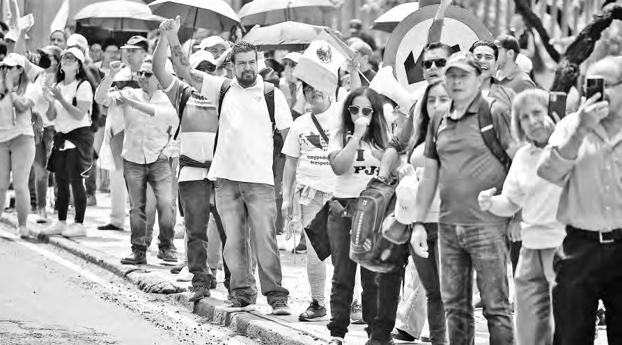 t Largas filas de autos se formaron en periférico sur, insurgentes sur y Camino a santa Fe debido a protestas de trabajadores del poder Judicial (en la imagen), de vecinos de colonias de Álvaro Obregón e integrantes de la comunidad LGbt+ en la alcaldía Miguel Hidalgo. en seis años, el gobierno capitalino contabilizó 20 mil 85 movilizaciones de carácter federal y local. Foto Cristina rodríguez rocío gonzález, Bertha t ramírez y laura gómez / P 29