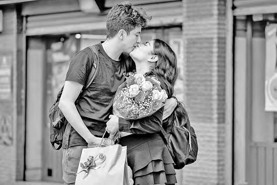 ▲ Regalos, flores y besos para reforzar la relación, en avenida Insurgentes. Foto Pablo Ramos