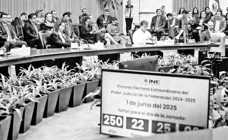 ejercicio de derechos políticos de la ciudadanía; esto será así, porque durante los pasados 10 años, el INE y los organismos públicos locales electorales hemos perfeccionado nuestros instrumentos de coordinación, por lo que cumpliremos con éxito nuestra nueva encomienda constitucional”, puntualizó. Para organizar estos comicios, el INE tendrá sólo 250 días, pero la consejera Taddei subrayó que lo harán “de forma certera e imparcial”, aunque todavía no cuenten con información precisa de cargos a elegir, ni presupuesto que se requiere, pues dependen del Senado y del Consejo de la Judicatura. Poco después de la ceremonia realizada en la explanada principal de la sede nacional del instituto, el Consejo General del organismo instaló la sesión extraordinaria para abordar los primeros pasos en pro de la elaboración del plan de trabajo y calendario de actividades para este proceso electoral de jueces. Sólo cuatro consejeros hicieron declaraciones. Carla Humphrey