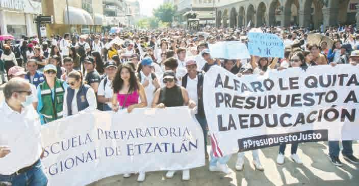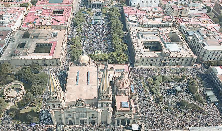 ▲ Miles de personas, encabezadas por autoridades universitarias, marcharon ayer en Guadalajara para exigir que fueran autorizados más recursos a la institución educativa. Sin embargo, el Congreso local apresuró, la noche del martes, la aprobación del Presupuesto de