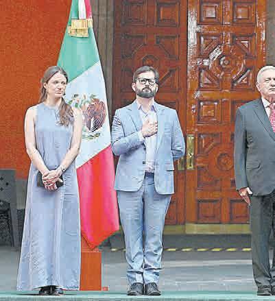 ‘‘La integración de AL, el objetivo’’ ● ‘‘Hay que reformar la OEA’’, coinciden López Obrador y Boric; México y Chile estrecharán nexos ▲ El mandatario mexicano recibió a su homólogo de Chile en Palacio Nacional. Acordaron una vía para destrabar el pase a Perú de la presidencia de la Alianza del Pacífico. Foto Roberto García E. OLIVARES, A. URRUTIA Y B. PETRICH / P 4 Y 5 Aumenta a 10 la cifra de fallecidos por meningitis aséptica en Durango ● Se registró ayer la primera muerte de un varón, quien fue operado en un hospital privado ● El registro de infectados es de 61, señalan autoridades locales SAÚL MALDONADO, CORRESPONSAL / P 32 En el empleo informal, 55.6% de la población ocupada: encuesta