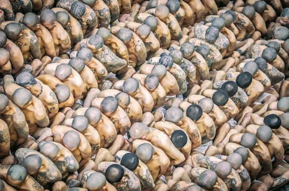 reclusos caminando descalzos, con el torso desnudo y con las manos en la nuca. Luego, esposados, los suben a autobuses. “Sepan que no volverán a salir caminando de aquí y pagarán por lo que son: cobardes terroristas”, advirtió. Los reos pertenecen principalmente a las bandas Mara Salvatrucha y Barrio 18. Foto Afp AFP Y REUTERS / P 20