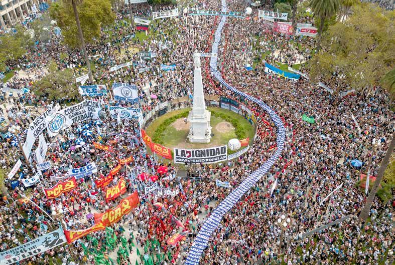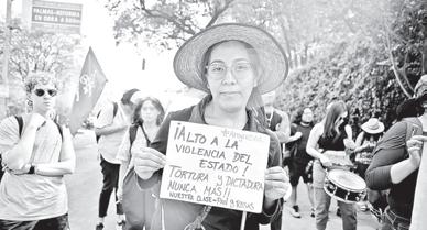 de derechos humanos enfatizaron que ‘‘el pueblo está de pie frente al gobierno neofascista de Javier milei’’; en otras ciudades hubo movilizaciones similares. en un video, el mandatario negó que hubiera 30 mil desaparecidos en esa etapa. Foto ap. Stella calloni / P 22