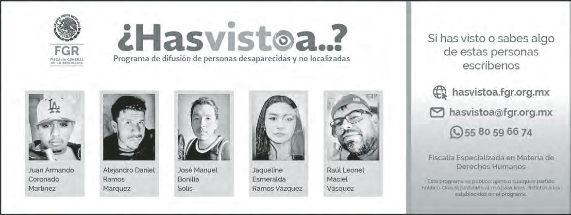 Año 42, número 15009, 25 de abril de 2026, La Jornada es una publicación diaria editada por DEMOS, Desarrollo de Medios, S.A. de C.V. con domicilio en Avenida Cuauhtémoc 1236, Colonia Santa Cruz Atoyac, Alcaldía Benito Juárez, C.P. 03310, Ciudad de México. Teléfonos 55 9183 0300 y 55 9183 0400. Página electrónica del periódico: http://www.jornada.com.mx y dirección electrónica: comentarios@jornada. com.mx. Editor Responsable María del Carmen Lira Saade, Directora General. Certificado de Reserva de Derechos al Uso Exclusivo del Título No. 04-1984-000000000571-101; ISSN 0188-2392, ambos otorgados por el Instituto Nacional del Derecho de Autor. Certificado de Licitud de Título número 2387 y Certificado de Licitud de Contenido número 1616, otorgados por la Comisión Calificadora de Publicaciones y Revistas Ilustradas de la Secretaría de Gobernación. Impresión: Imprenta de Medios, S.A. de C.V. con domicilio en Avenida Cuitláhuac 3353, colonia Cosmopolita, Alcaldía Azcapotzalco, C.P. 02670, Ciudad de México, teléfonos 55 5355 6702 y 55 5355 7794, Fax: 55 5355 8573. Distribución: en el interior de la República y el extranjero por Distribuidora y Comercializadora de Medios, S.A. de C.V. CENTRAL DE SUSCRIPCIONES, con domicilio en Avenida Cuitláhuac 3353, colonia Cosmopolita, Alcaldía Azcapotzalco, C.P. 02670, Ciudad de México, teléfonos 55 5541 7701 y 55 5541 7002. Distribuido en la Ciudad de México por la Unión de Expendedores y Voceadores de los Periódicos de México, A.C., con domicilio en calle Guerrero número 50, Colonia Guerrero, Alcaldía Cuauhtémoc, C.P. 06350, Ciudad de México, Teléfonos; 55 5591 1400 y 55 5535 1361. Este número se terminó de imprimir el 25 de abril de 2026, con un tiraje promedio de 146,429 ejemplares.