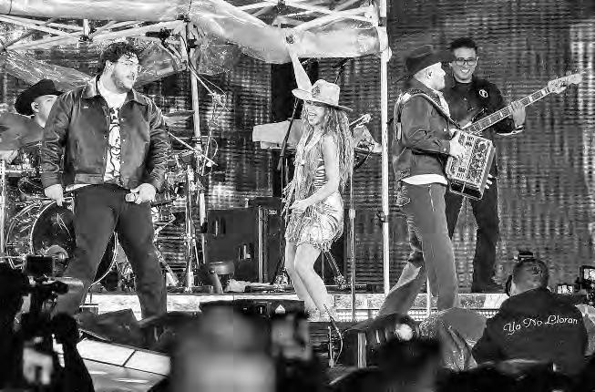 En medio de una intermitente lluvia, que en varios momentos se tornó aguacero, con un retraso de una hora y 40 minutos, y la sorpresiva presentación del Grupo Frontera, Shakira ofreció ayer su cuarto concierto en la Ciudad de México. Con ello se encamina a hacer historia, al ser la primera artista en llenar en siete presentaciones consecutivas el Estadio GNP, luego de que se han agotado las 455 mil localidades disponibles, 65 mil por día, como parte de la gira Las mujeres ya no lloran World Tour. Este concierto se distinguió de los tres anteriores porque la colombiana tuvo de invitados a los integrantes del Grupo Frontera, con quienes interpretó Entre paréntesis, canción que grabaron al unísono hace un año. De por sí eufórico desde el momento mismo que la intérprete apareció en el escenario, este inesperado dueto hizo estallar las gargantas y la locura entre esa incondicional y entregada audiencia, que durante más de dos horas vitoreó a su heroína, coreó hasta el frenesí su nombre, se desgañitó cantando una treintena de canciones y las bailó hasta una fatiga que nunca llegó. Atrás había quedado la molestia