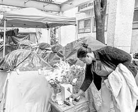 ▲ La migrante hondureña Daniela Evans, madre de Omer Valentín, fallecido ayer, monta el altar donde se colocaron las cenizas de su bebé de seis meses, instalado en el campamento ubicado en la plaza Giordano Bruno. Foto Roberto García Ortiz