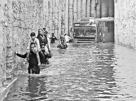 desde la noche del miércoles a esa población. En algunas zonas, el nivel del agua alcanzó más de 60 centímetros de altura, lo que dejó muchos autos sumergidos. Foto La Jornada