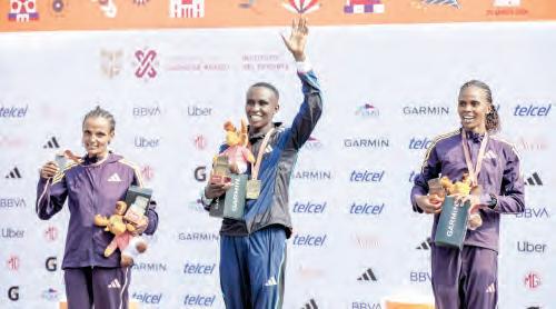 s La edición 41 de la competencia culminó con tres corredores de Kenia en el podio: edwin Kiprop Kiptoo (en la imagen, quien repitió su triunfo de 2022), Leonard Langat y Francis Cheruiyot. Participaron 30 mil corredores, 500 de ellos extranjeros. el mejor mexicano fue tomás Luna, quien llegó en noveno lugar. La ruta de 42.195 kilómetros partió de Ciudad universitaria y la meta fue en el Zócalo. Foto Pablo Ramos aDriana Díaz y Joshua reyes /dePorteS gustavo castillo /P4y5